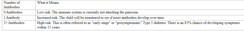 For children who have 1 of these antibodies present, their risk is not as high, but they could develop more antibodies over time and their risk will increase.